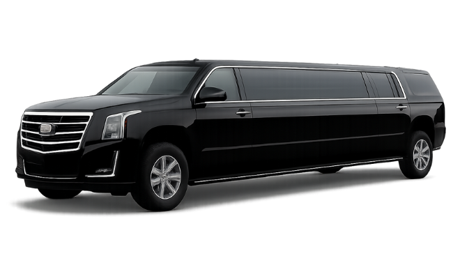 A stretch limousine built on the Cadillac Escalade platform. Accommodates up to 12 passengers with a luxurious interior ideal for events, weddings, and VIP transport.
